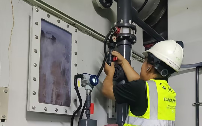 2、出口設置壓力傳感器,設置高壓報警,防止日用罐電動閥門故障時,加藥泵一直工作,導致的管道壓力過大,出現(xiàn)破裂情況。